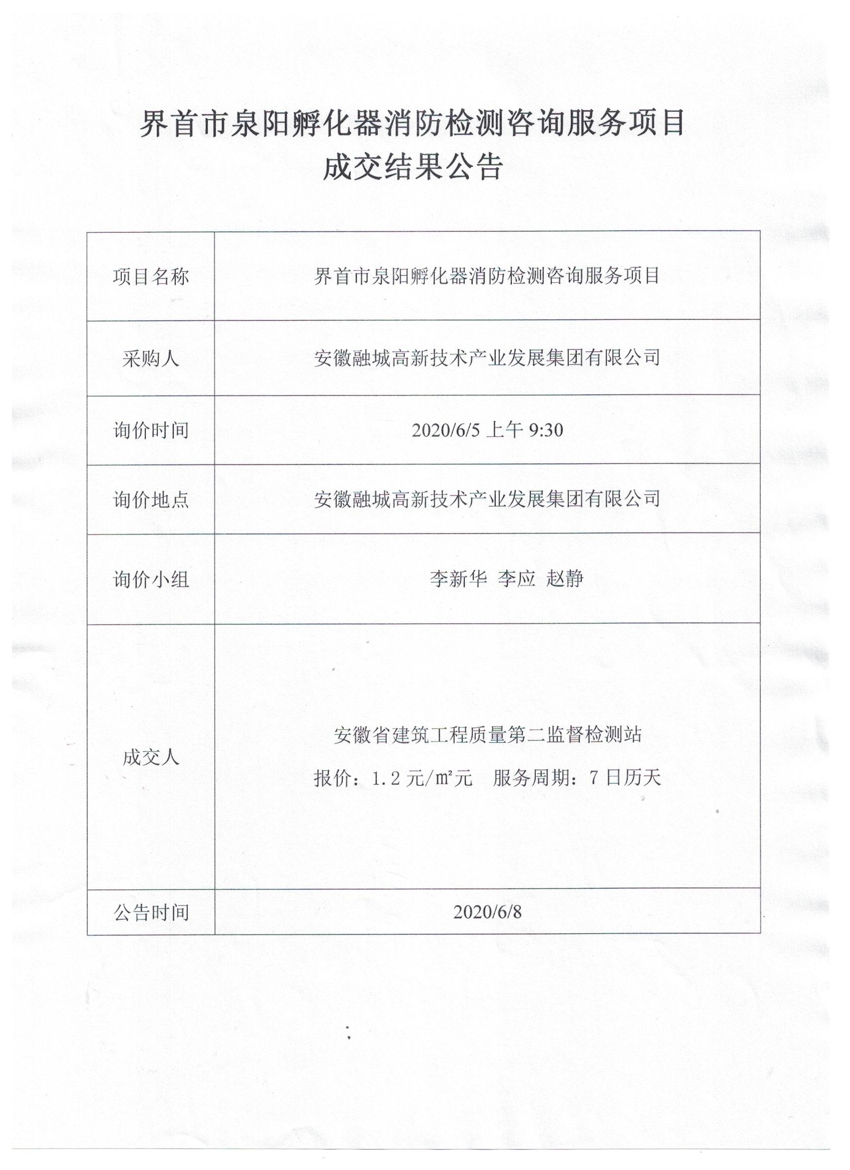 界首市泉陽(yáng)孵化器消防檢測(cè)咨詢服務(wù)項(xiàng)目成交結(jié)果公告