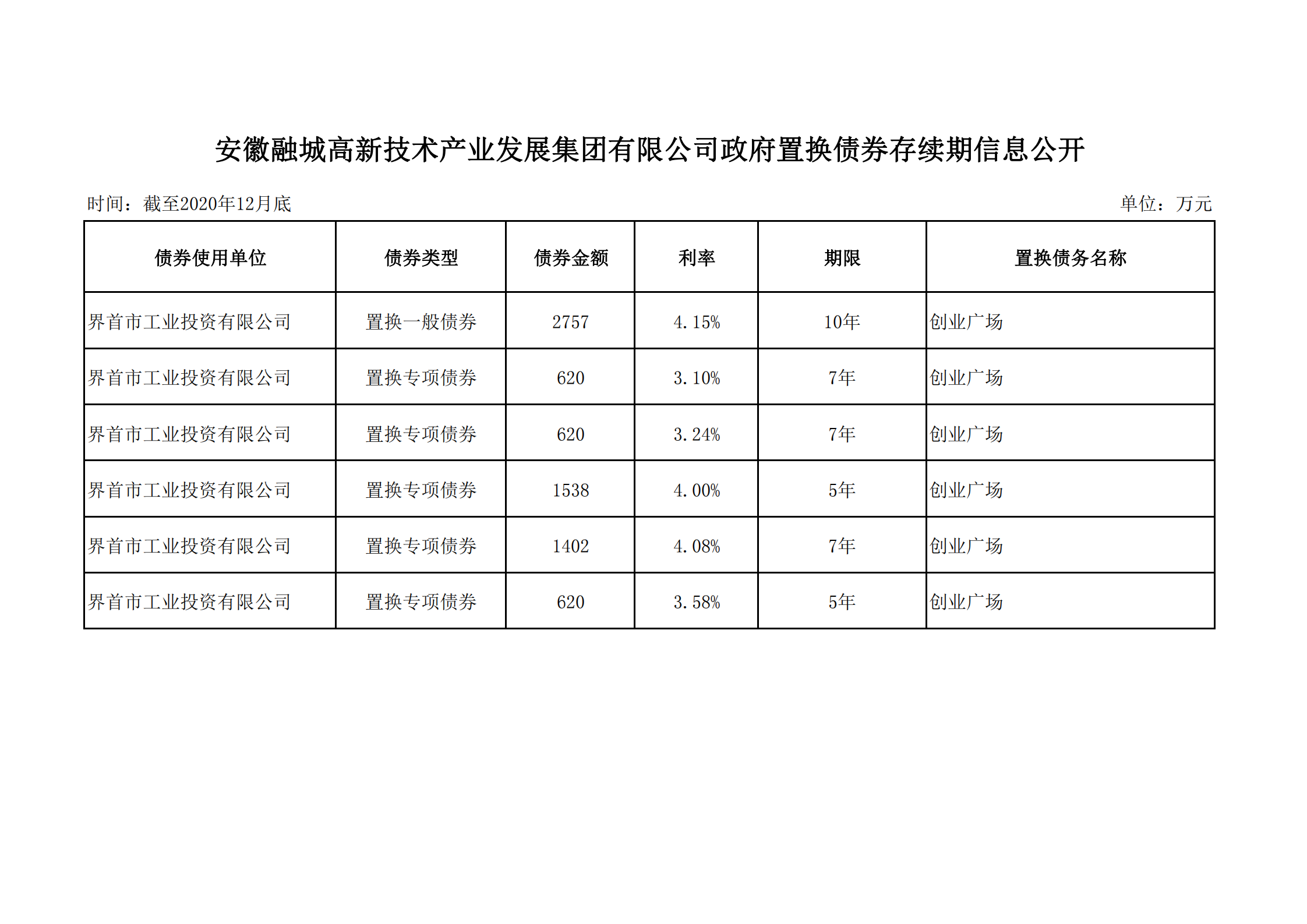 安徽融城高新技術產業發展集團有限公司政府債券存續期信息公開表0