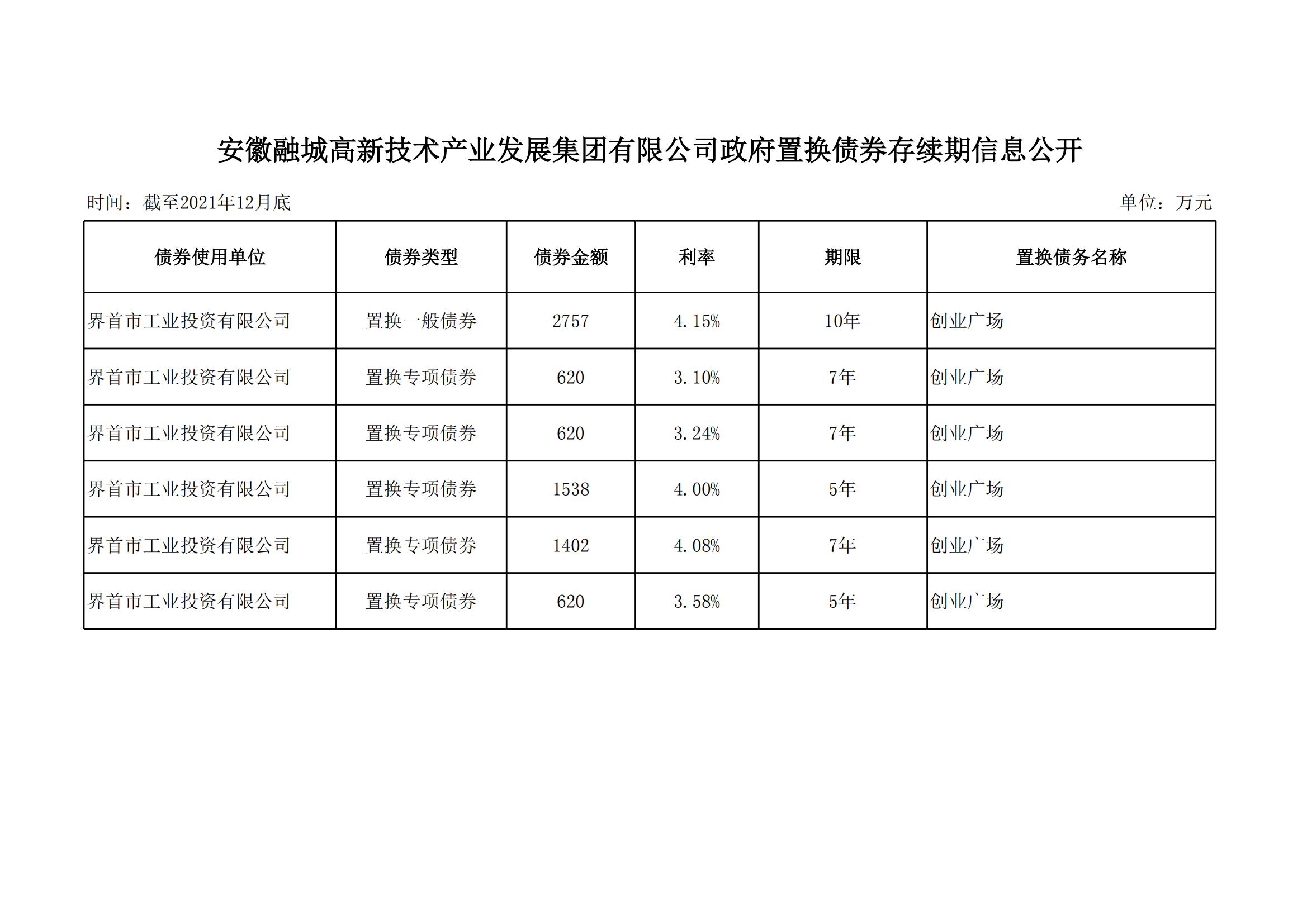 安徽融城高新技術產業發展集團有限公司政府置換債券存續期信息公開
