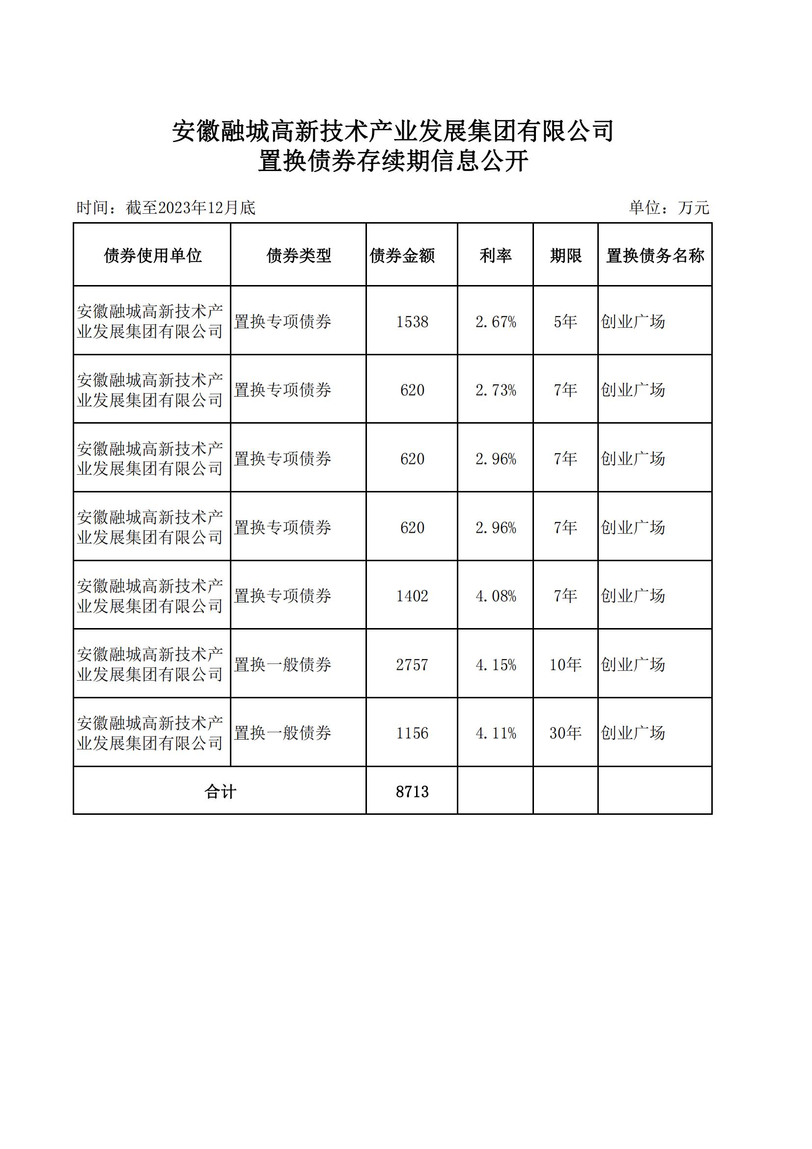 安徽融城高新技術(shù)產(chǎn)業(yè)發(fā)展集團有限公司置換債券存續(xù)期信息公開